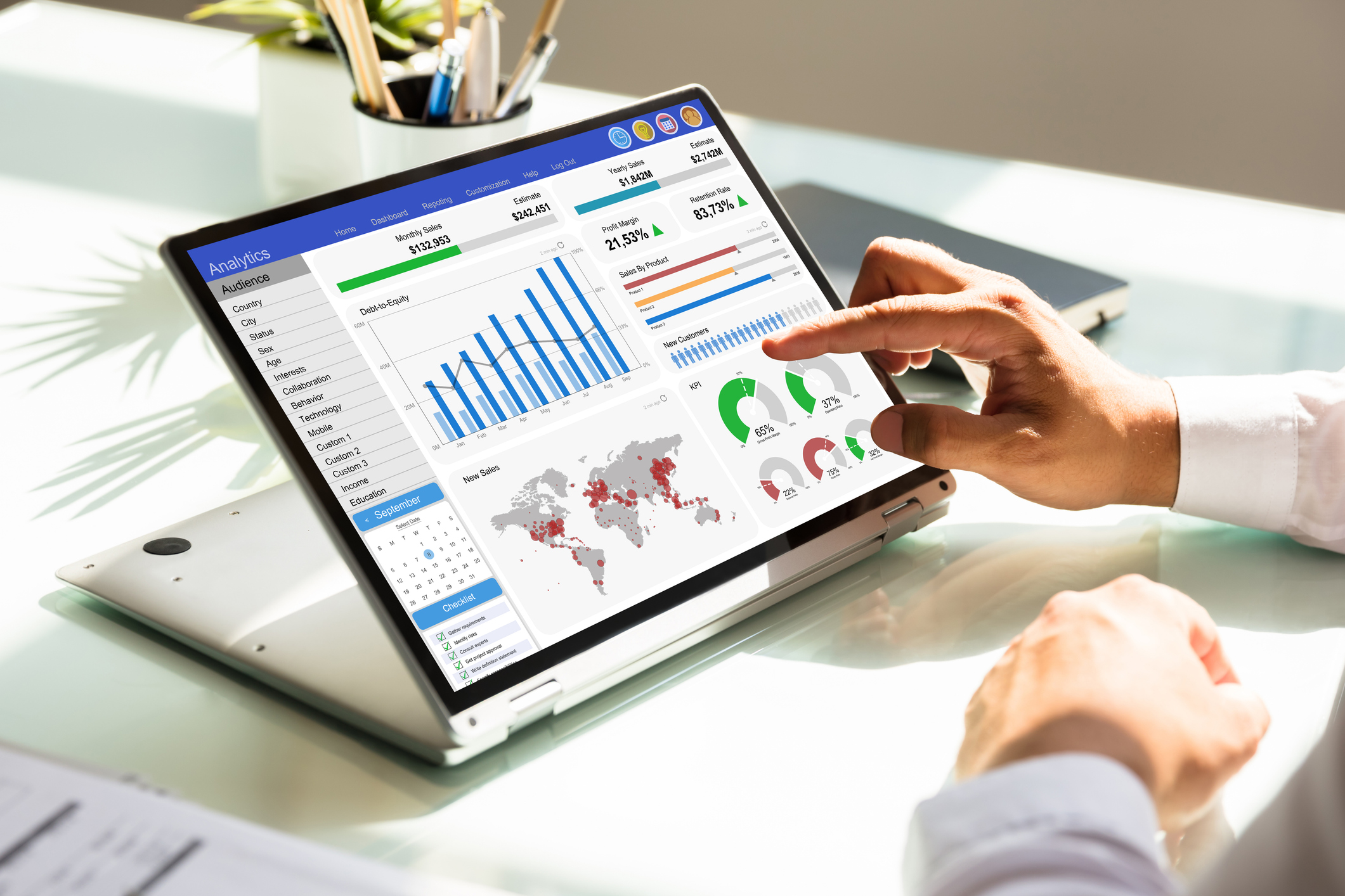 Previous: Businessman analyzing graph on laptop